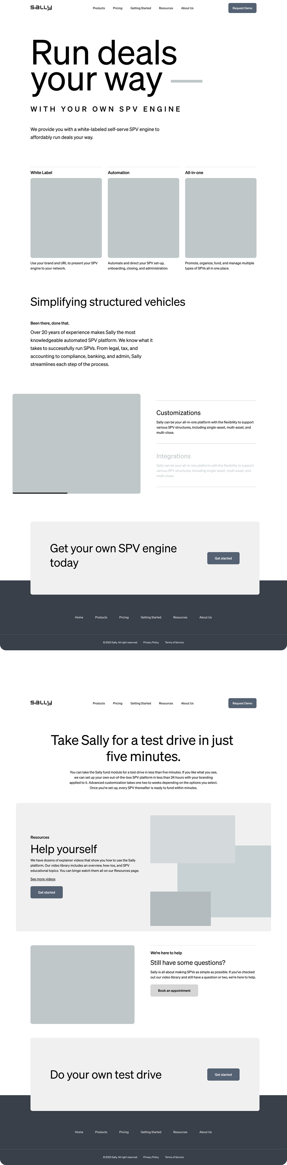 The design for the Sally website is modern, clean, and technologically focused, with a clear intention to convey automation, sophistication, and reliability to a business-to-business (B2B) audience.